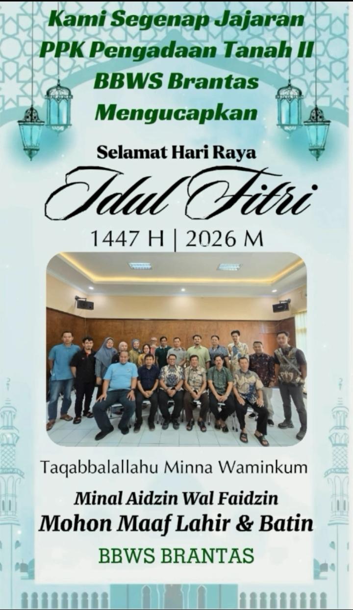 Kami segenap jajaran PPK Pengadaan Tanah II BBWS Brantas mengucapkan Selamat Hari Raya Idul Fitri 1447 Hijriah.