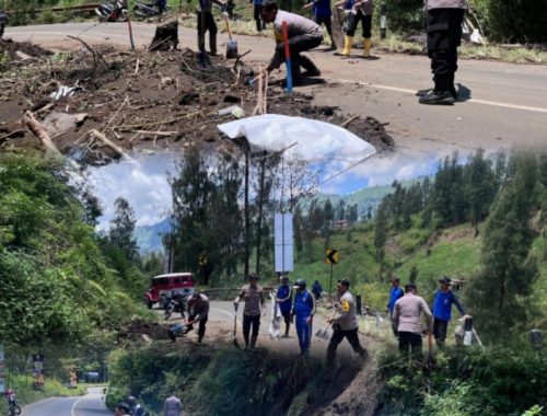 Aksi Cepat Tanggap Polres Probolinggo Tangani Tanah Longsor di Jalur Bromo