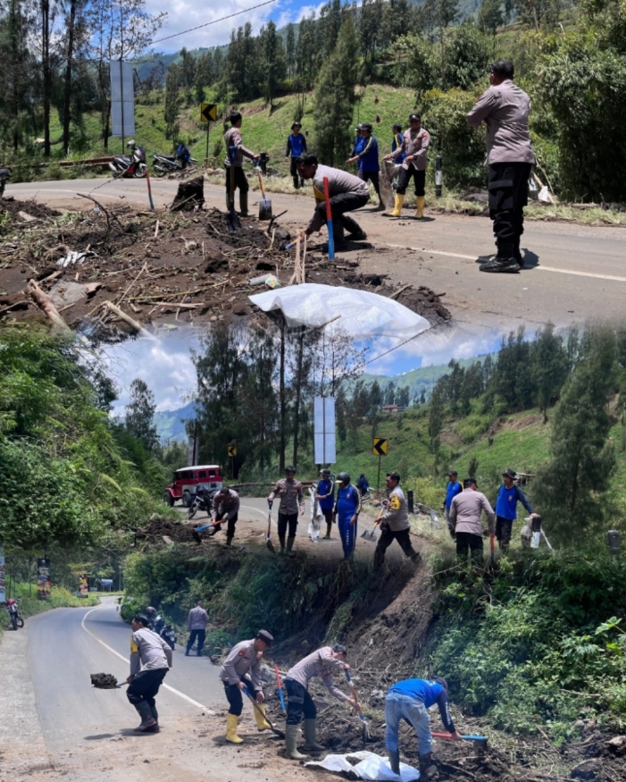 Aksi Cepat Tanggap Polres Probolinggo Tangani Tanah Longsor di Jalur Bromo