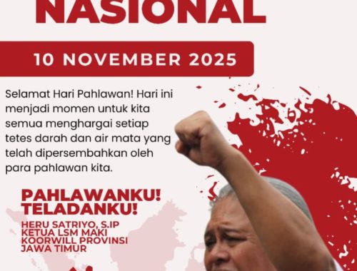 Melalui pernyataan resmi Koordinator Wilayah MAKI Jawa Timur, Heru Satriyo, S.IP, lembaga ini mengajak seluruh elemen masyarakat untuk meneladani nilai perjuangan, keberanian, serta integritas para pahlawan bangsa dalam menghadapi tantangan zaman.