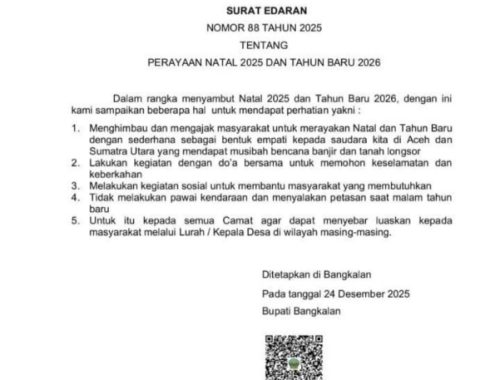 Bupati Bangkalan Keluarkan Surat Edaran Tentang Perayaan Natal 2025 dan Tahun Baru 2026