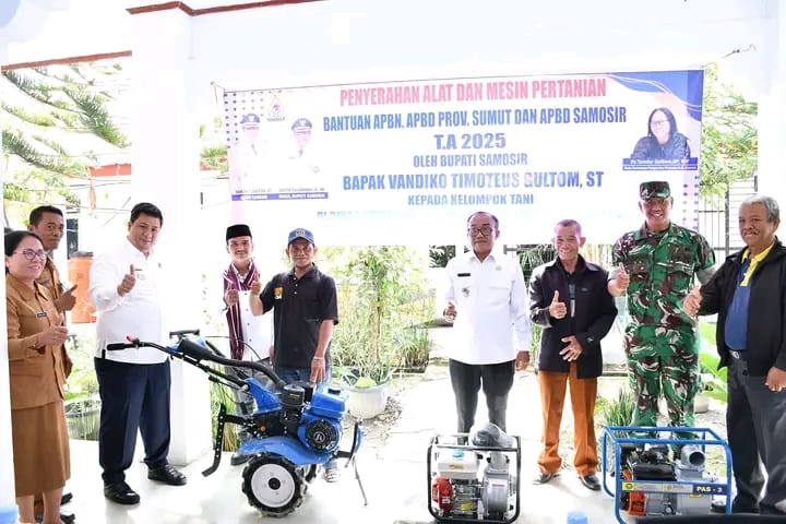 Vandiko Gultom menyerahkan bantuan alat dan mesin pertanian (Alsintan) kepada 26 kelompok tani. Bantuan tersebut bersumber dari Anggaran Pendapatan dan Belanja Negara (APBN), APBD Provinsi Sumatera Utara, serta APBD Kabupaten Samosir.