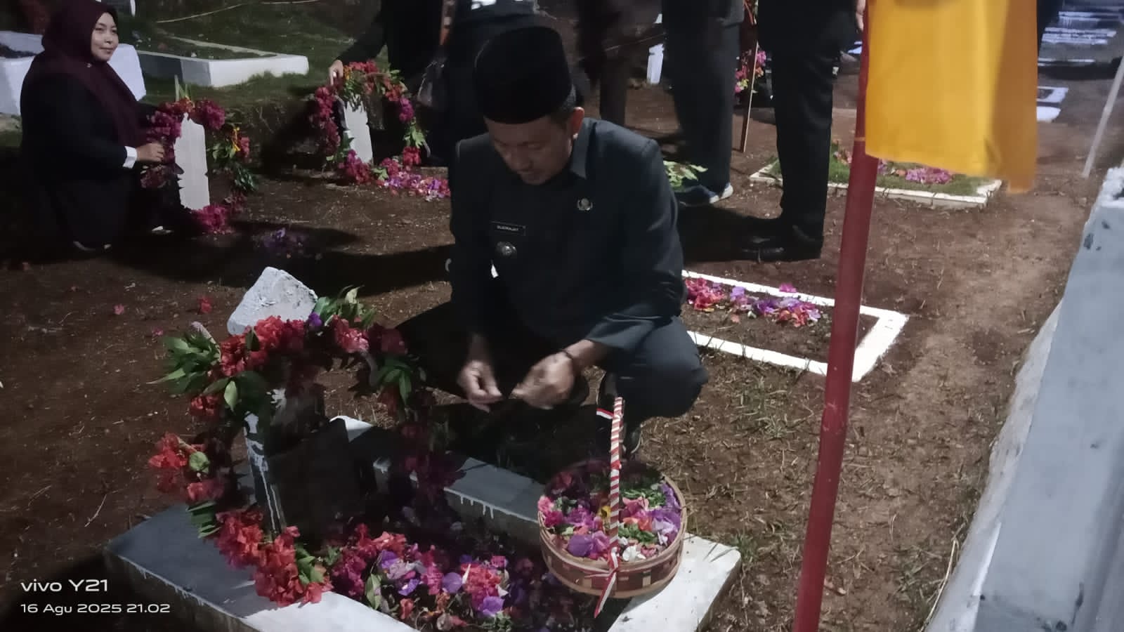 Camat Cikancung Laksanakan Renungan Suci di Taman Makam Pahlawan Bahagia Cikuya pada Malam 17 Agustus