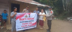 Dalam aksi sosial tersebut, Polsek Silaen menyalurkan bantuan berupa paket sembako berupa 2 Kg Gula putih, 1 Kg minyak goreng, 1 papan telor ayam dan 2 parsel berisi roti natal