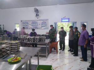 Wakasad bersama Pangdam dan rombongan meninjau seluruh fasilitas dapur, mulai dari ruang penerimaan bahan, pengolahan, pengepakan, hingga pemuatan makanan siap saji. Dalam kesempatan itu juga dilakukan penandatanganan prasasti, pengguntingan pita, serta makan bersama.