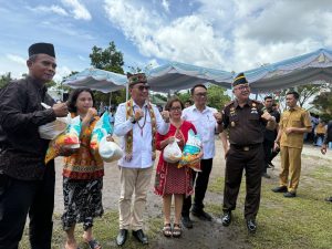 Usai upacara acara dilanjutkan dengan penyerahan Piagam bagi Kepala Sekolah, guru dan murid serta pembagian sembako. (Ryt)
