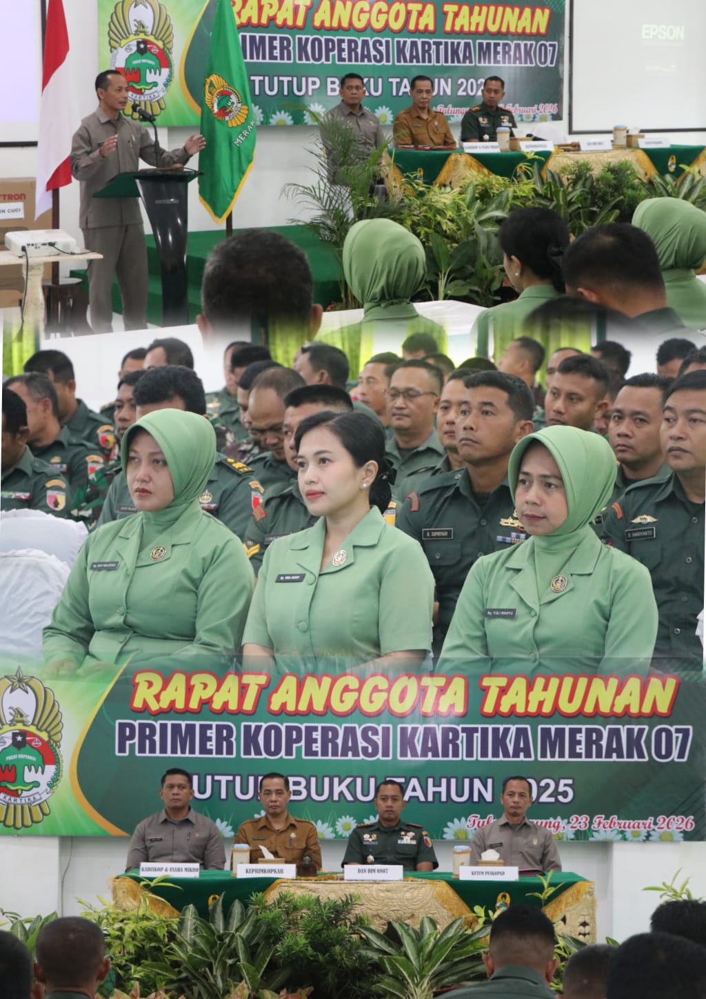 “Rapat Anggota Tahunan ini bukan sekadar agenda rutin, tetapi menjadi forum strategis untuk mengevaluasi kinerja, memperkuat transparansi dan akuntabilitas, serta menyusun langkah-langkah inovatif demi kemajuan koperasi. Saya berharap Primkop Kartika Merak 07 terus berkembang, adaptif terhadap tantangan, serta mampu meningkatkan kesejahteraan seluruh anggotanya,” tegasnya.