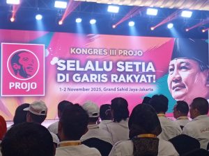 Jakarta, 1 November 2025 — Organisasi relawan pendukung Presiden Joko Widodo, PROJO, menggelar Kongres ke-3 bertajuk “Selalu Setia di Garis Rakyat” di Hotel Jaya Sahid, Jakarta Selatan. Kegiatan ini menjadi momentum penting bagi PROJO untuk menegaskan arah perjuangan ke depan, khususnya dalam mendukung pemerintahan Prabowo Subianto–Gibran Rakabuming Raka yang akan segera memimpin Indonesia.