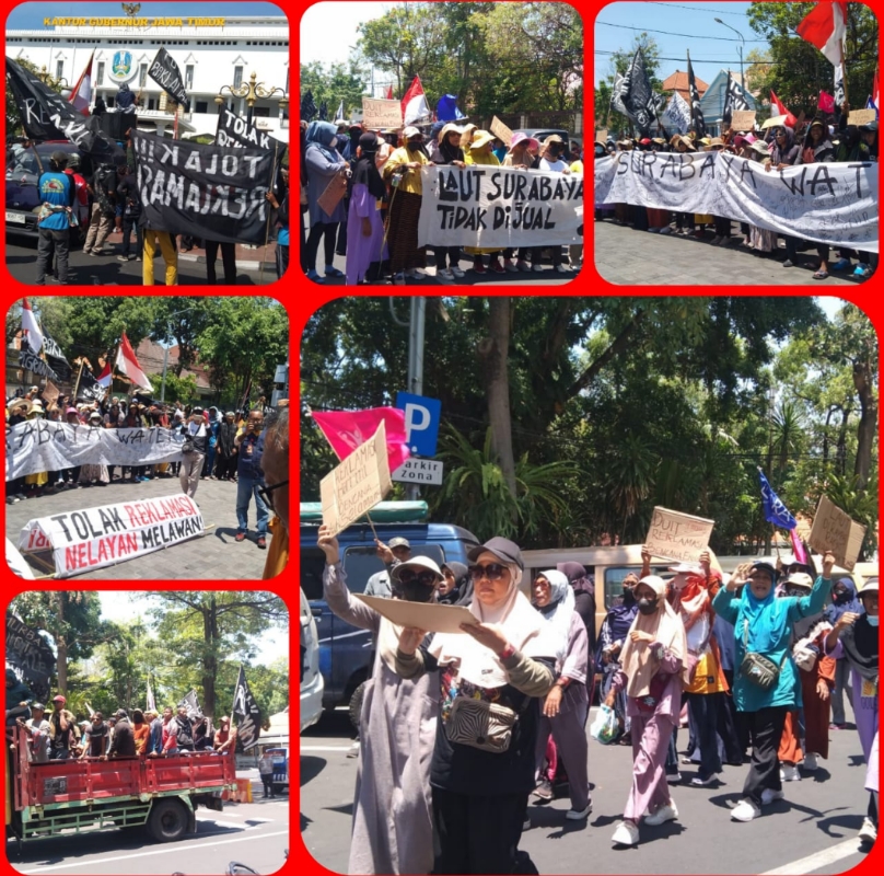 Rombongan demonstran yang berkumpul dan berangkat dari bundaran ITS Surabaya tersebut melakukan aksi demo dengan tuntutan utama adalah Menolak Reklamasi pembangunan Surabaya Waterfront Land (SWL).