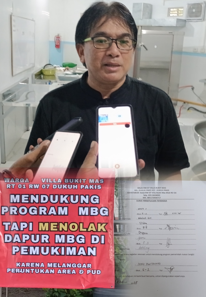 Isu kemudian berkembang ke peralihan fungsi rumah menjadi dapur MBG, serta persoalan izin PUD (Peraturan Umum Dalam). Joko menjelaskan bahwa pihak lingkungan tidak pernah menyampaikan larangan atau keberatan dari awal, dan informasi terkait aturan tersebut justru baru muncul ketika program hendak berjalan.