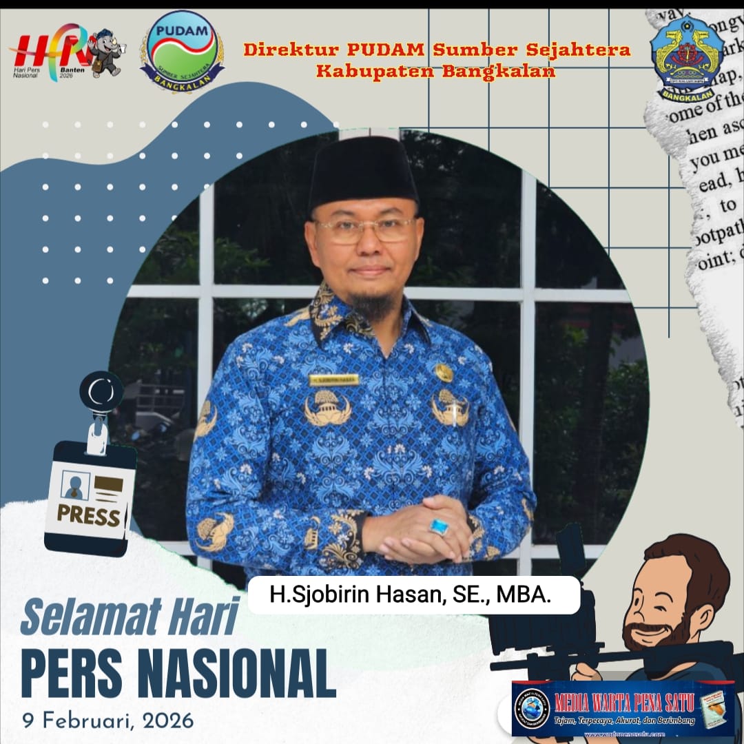 WARTAPENASATUJATIM | BANGKALAN – Dalam rangka memperingati Hari Pers Nasional ( HPN ). Direktur PUDAM Sumber Sejahtera Kabupaten Bangkalan H. Sjobirin Hasan menyampaikan ucapan selamat memperingati Hari Pers Nasional (HPN) 2026.
