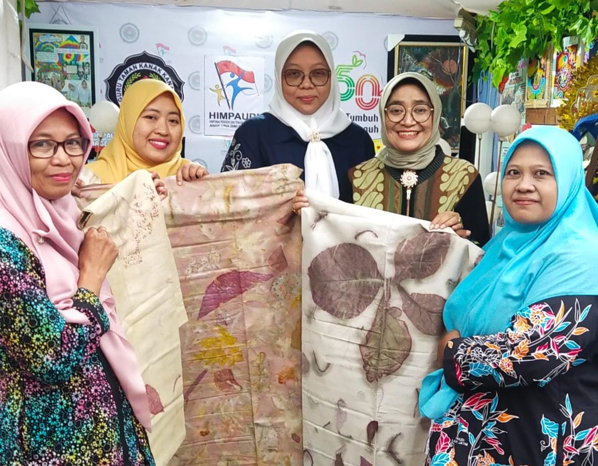 Dipimpin oleh Prof. Dr. Susanti, tim PKM Unesa menghadirkan pelatihan batik ecoprint, teknik membatik ramah lingkungan yang menggunakan bahan alami tanpa bahan kimia berbahaya.