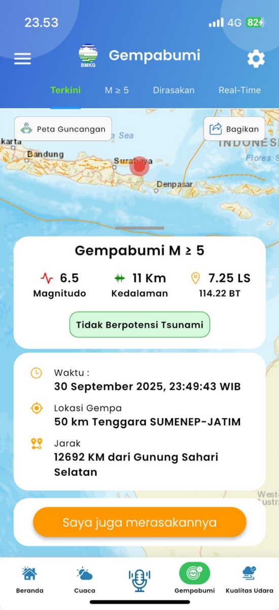 Gempa M 6,5 Guncang Sumenep, Jawa Timur: BMKG Pastikan Tak Berpotensi Tsunami