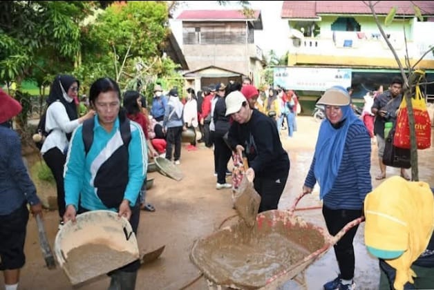 Gotong-royong Dilakukan oleh Ketua TP PKK Tapteng Beserta Jajarannya Bersama Masyarakat di Tapteng