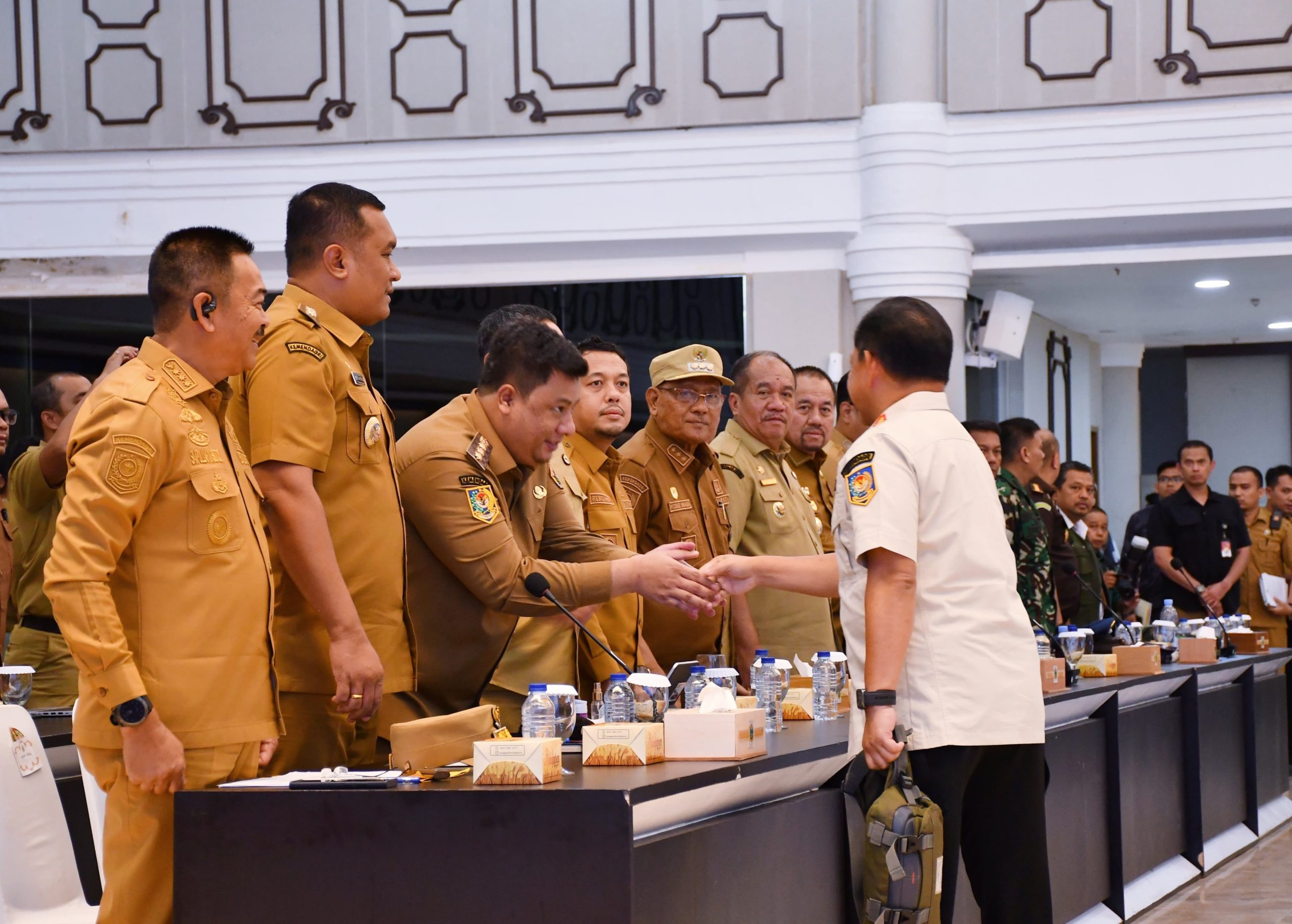 WARTAPENASATU -Samosir, Sumatera Bupati Samosir Vandiko T Gultom didampingi Kadis Kominfo Immanuel Sitanggang dan Kepala Bapperinda Rajoki Simarmata hadiri Rapat Koordinasi (Rakor) Percepatan Rehabilitasi dan Rekonstruksi Pasca Bencana yang langsung dipimpin Bapak Menteri Dalam Negri RI Tito Karnavian yang juga selaku Ketua Satgas Pemulihan Bencana Sumatera, di Aula Raja Inal Siregar, Kantor Gubernur Sumatera Utara (Sumut), Senin (12/1/2025).