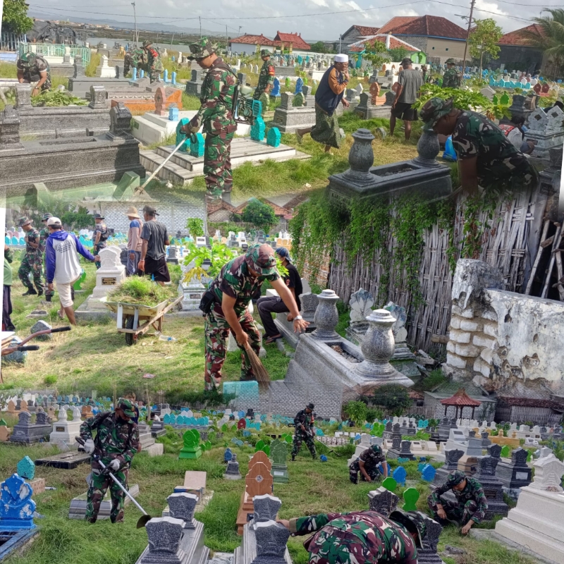 HUT TNI ke-80, Koramil Kalianget Gelar Karya Bakti Bersihkan TPU