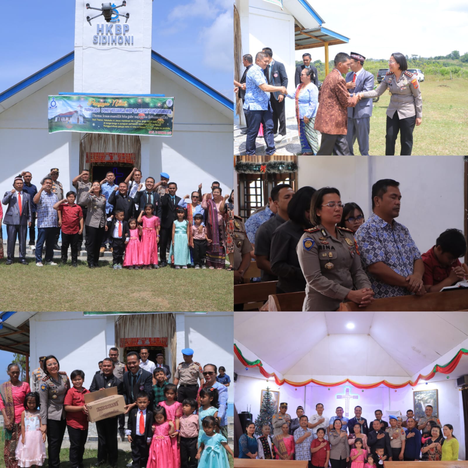 Kapolres Samosir AKBP Rina Sry Nirwana Tarigan, S.I.K melaksanakan kunjungan sekaligus ibadah bersama jemaat Gereja HKBP Sidihoni, Desa Sabungan Huta, Kecamatan Ronggur Nihuta, Kabupaten Samosir, Minggu ( 25/1/2026 ).