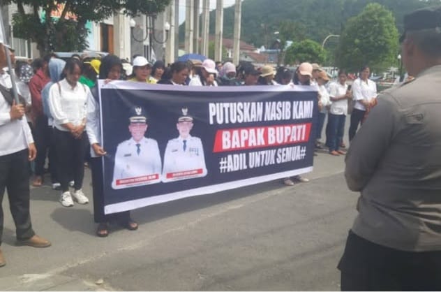Tapanuli Tengah, wartapenasatu.com – 25 Oktober 2025 – Gelombang aspirasi menggema di depan Kantor Bupati Tapanuli Tengah (Tapteng), Sumatra Utara, pada Kamis (23/10/2025). Sejumlah Tenaga Kesehatan Sukarela (TKS) dari Dinas Kesehatan Kabupaten Tapteng menggelar aksi unjuk rasa damai, menuntut kejelasan status kepegawaian mereka. Namun, ironi mencuat ketika Bupati Tapteng, Masinton Pasaribu, justru dikabarkan menikmati buah durian di sebuah tempat wisata, memicu kekecewaan mendalam di kalangan para TKS.