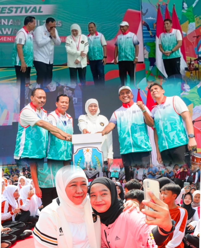 Gubernur Jawa Timur, Khofifah Indar Parawansa, turut hadir di tengah-tengah keramaian, menambah keakraban dan keceriaan suasana. Dalam sambutannya, Gubernur Khofifah menegaskan bahwa ajang Jatim Sportiv Festival ini merupakan momen penting untuk memacu prestasi atlet, baik di kancah nasional maupun internasional.