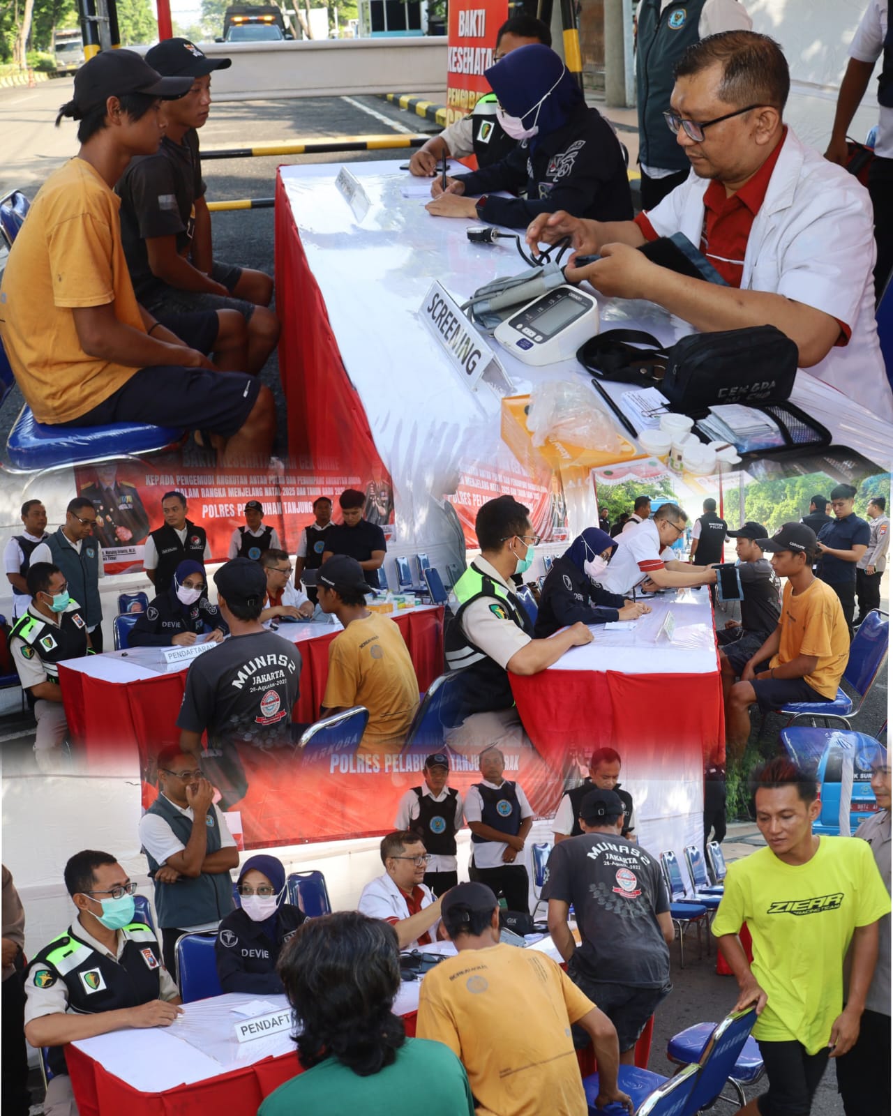 Pada Jumat (12/12/2025), aparat kepolisian berkolaborasi dengan BNNK Surabaya menggelar kegiatan Bakti Kesehatan dan Tes Urine bagi para pengemudi angkutan umum, angkutan antar pulau, serta ojek online (Ojol) yang melintas di kawasan Gate Pelabuhan Jamrud, Jalan Perak Timur.