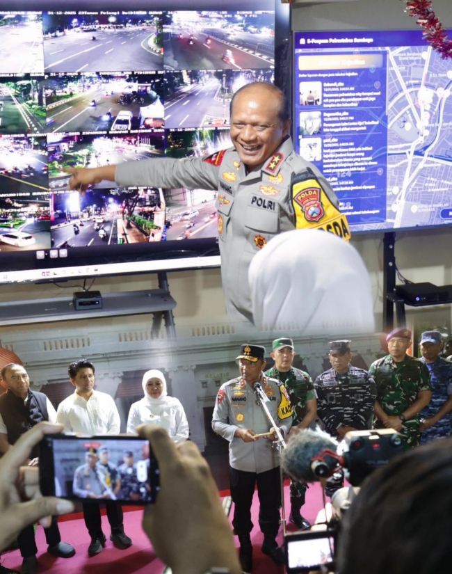 Pemantauan dilakukan di Pos Pengamanan Bundaran Cito dan Pos Taman Bungkul untuk memastikan situasi keamanan dan ketertiban masyarakat (kamtibmas) tetap kondusif menjelang detik-detik pergantian tahun.