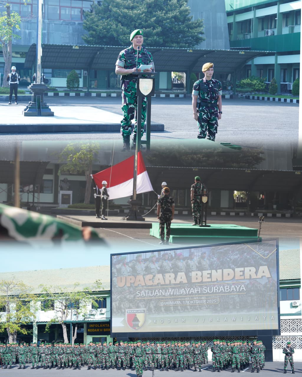 WARTAPENASATUJATIM | Surabaya – Upacara rutin 17-an di Lapangan Ahmad Yani, Makodam V/Brawijaya Surabaya pada Jumat (17/10/2025) diwarnai dengan sejumlah pesan.