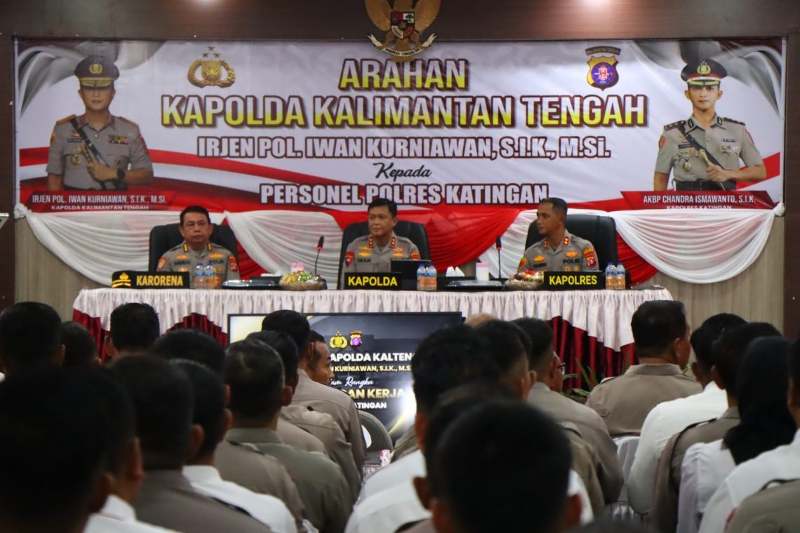 Dalam sambutannya, Kapolda Iwan Kurniawan menyampaikan apresiasi mendalam kepada seluruh jajaran Polres Katingan atas dedikasi dan kerja keras mereka dalam menjaga Kamtibmas di Kabupaten Katingan. Beliau juga memberikan penghargaan khusus atas berbagai inovasi yang telah dilakukan Polres Katingan dalam meningkatkan kualitas pelayanan kepada masyarakat.