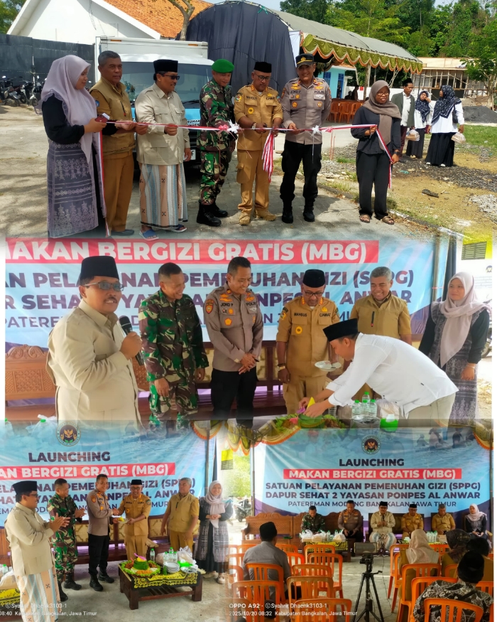 WARTAPENASATUJATIM | Bangkalan – Koramil 0829-12/Modung bersama Forkopimcam menghadiri Launching Makan Bergizi Gratis (MBG) di dapur Yayasan Pondok Pesantren Al Anwar 2, Desa Patereman, Kecamatan Modung, Kabupaten Bangkalan, Senin (20/10/25). Kegiatan ini menjadi langkah nyata dalam meningkatkan asupan gizi masyarakat, khususnya bagi pelajar di wilayah setempat.