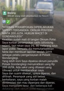 Namun berdasarkan penelusuran dan klarifikasi internal, sebelum video itu beredar, keluarga saksi kunci justru meminta agar difasilitasi mediasi oleh Polsek Gondanglegi untuk mempertemukan dengan pihak korban.