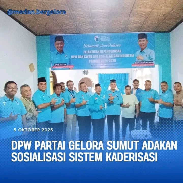 DPW Partai Gelora Indonesia Provinsi Sumut melalui bidang Kaderisasi melaksanakan Kegiatan Sosialisasi Sistem Kaderisasi Partai Gelora Indonesia, Minggu (5/10/2025), di Kantor DPW, Jalan Pencak, Kecamatan Medan Kota, Kota Medan.
