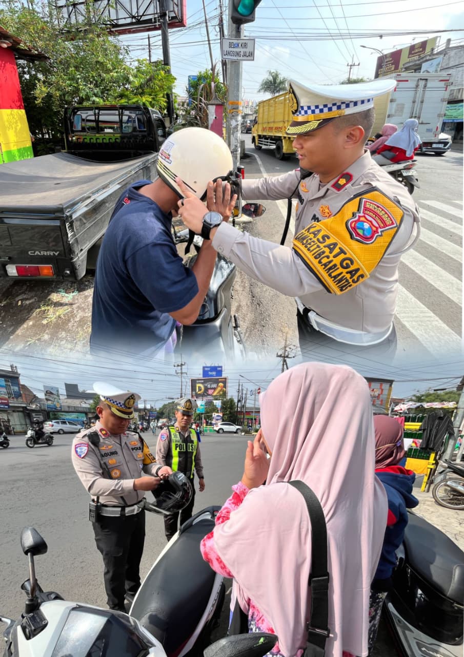 “Kegiatan hari ini masih dalam rangka Operasi Zebra Semeru 2025. Kami membagikan hampir 100 helm untuk mengingatkan masyarakat, khususnya pengendara roda dua agar selalu menggunakan helm,” ujar Kompol Agung, Senin (25/11/2025).