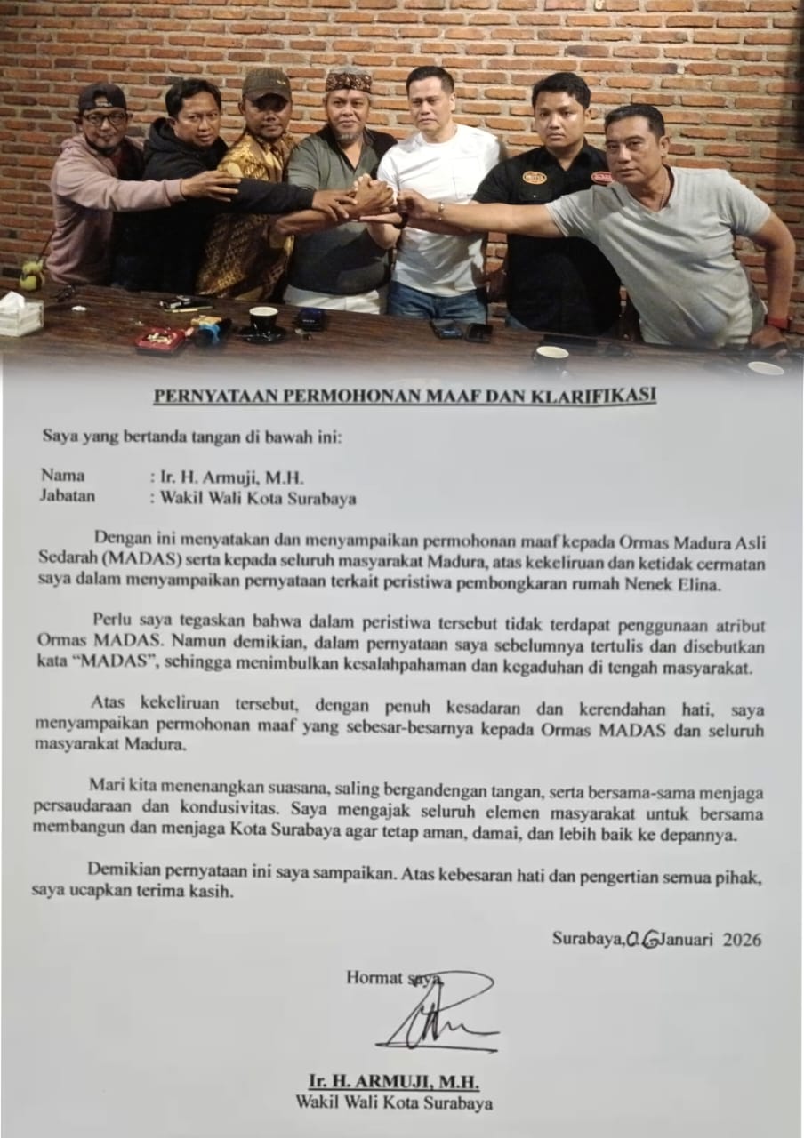 Pada 6 Januari 2025, bertempat di Auditorium Kampus UNITOMO, Wakil Wali Kota Surabaya Armuji secara sadar dan resmi menandatangani Surat Permohonan Maaf atas tindakan yang dinilai merugikan Ormas MADAS.