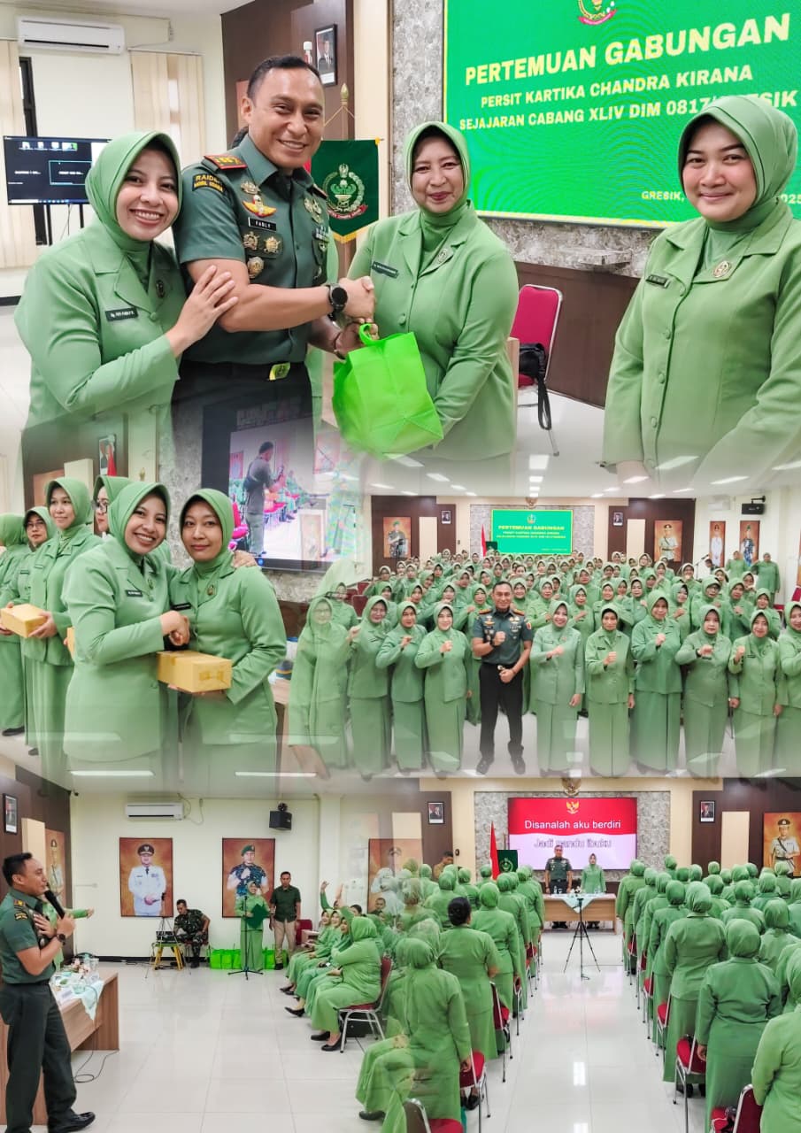 WARTAPENASATUJATIM | Gresik – Dalam upaya mempererat silaturahmi dan memperkuat peran organisasi di lingkungan TNI AD, Persit Kartika Chandra Kirana (KCK) Cabang XLIV Dim 0817/Gresik menggelar Pertemuan Gabungan Persit se-jajaran bertempat di Aula Makodim 0817/Gresik pada Senin (3/11/2025).