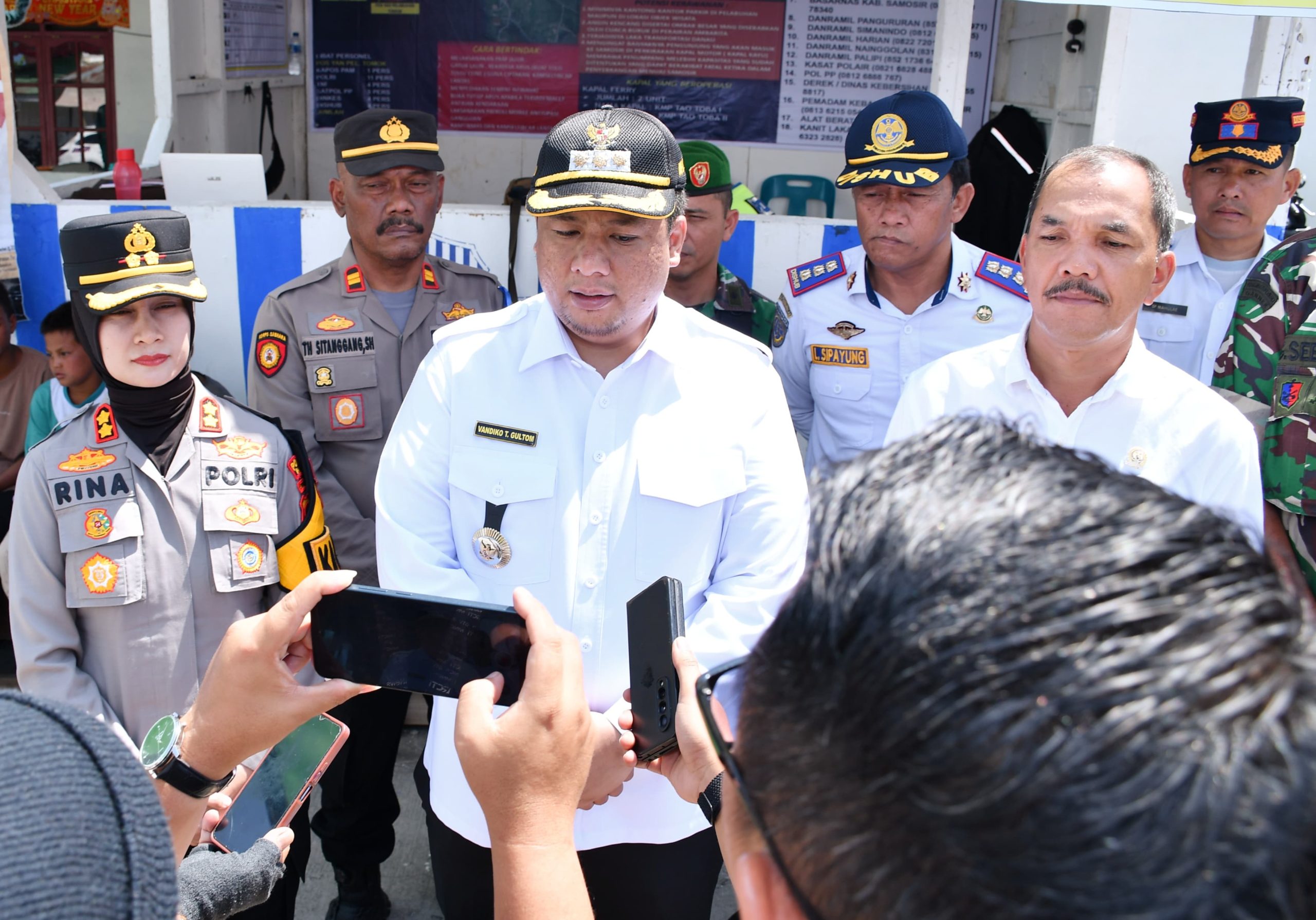 Samosir, Sumatera-Bupati Samosir Vandiko T. Gultom bersama Wakil Bupati Ariston Tua Sidauruk dan Forkopimda memimpin langsung monitoring Pos Pengamanan dan Pos Pelayanan Natal dan Tahun Baru (Nataru), (24/12/2025).