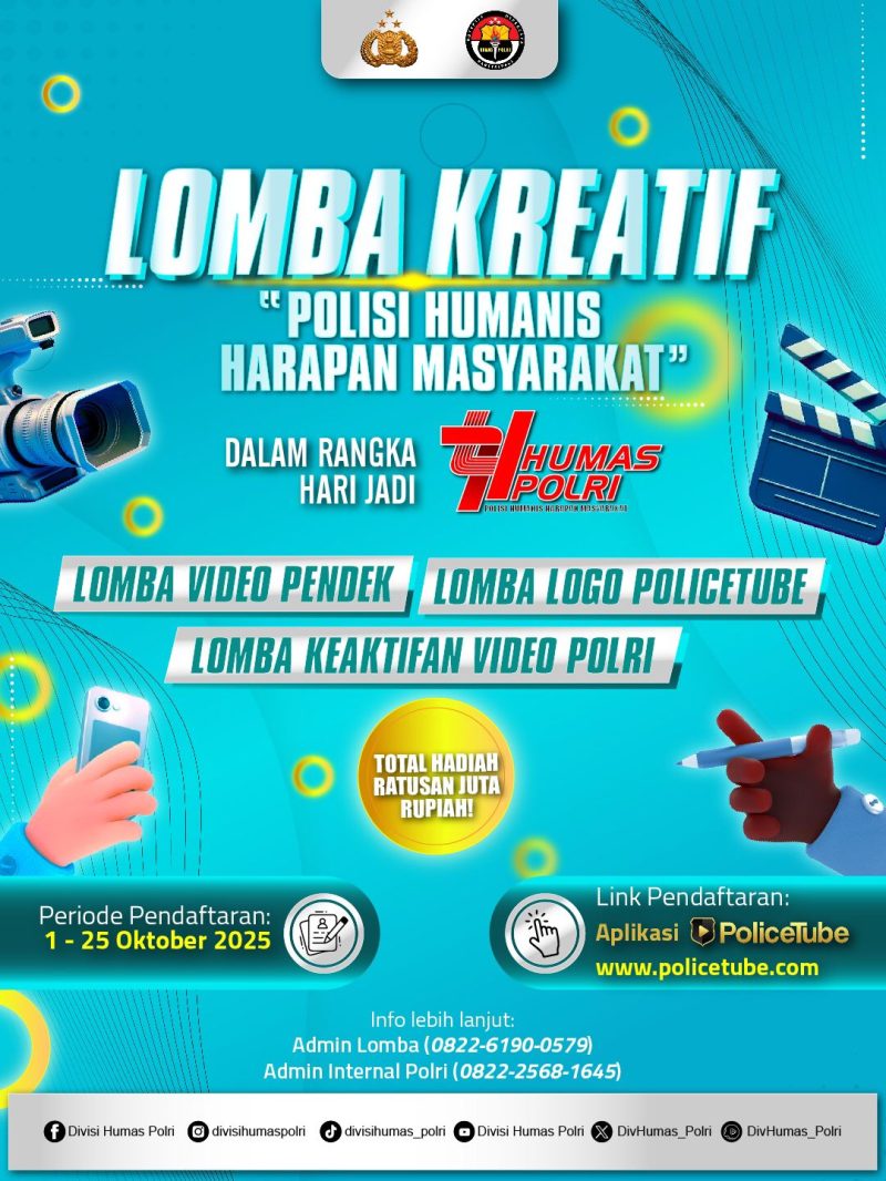Periode pendaftaran lomba berlangsung mulai 1 hingga 25 Oktober 2025 melalui aplikasi PoliceTube atau situs resmi www.policetube.com.