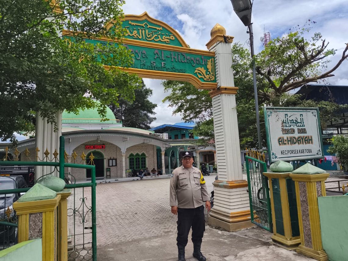 Toba, wartapenasatu.com – Suasana khidmat dan aman menyelimuti pelaksanaan Salat Jumat di Masjid Al-Hidayah, Kecamatan Porsea, Kabupaten Toba, pada tanggal 17 Oktober 2025. Kehadiran dua anggota Polsek Porsea, Aipda Joko Sitorus dan Bripka Derlan Sianturi, yang berjaga di sekitar halaman masjid, memberikan rasa tenang dan nyaman bagi para jamaah yang melaksanakan ibadah. Pengamanan ini merupakan bagian dari upaya rutin kepolisian dalam menjaga keamanan dan ketertiban masyarakat.