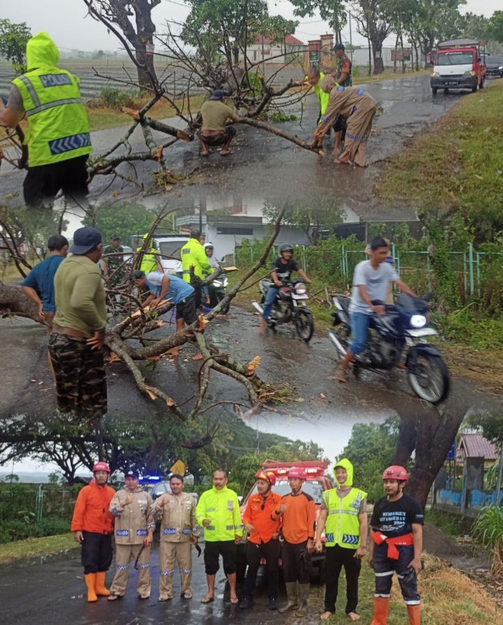 Polisi Sigap Tangani Pohon Tumbang di Jalan Raya Rejoso