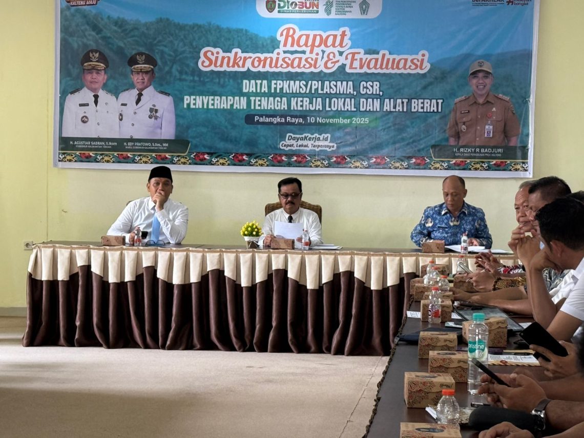 Palangka Raya, wartapenasatu.com – Rapat Sinkronisasi dan Evaluasi Data FPKMS/Plasma, CSR, Penyerapan Tenaga Kerja Lokal, dan Alat Berat. Kegiatan bertempat di Aula Dinas Perkebunan Provinsi Kalimantan Tengah, Senin, 10 November 2025.