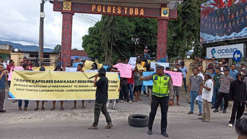 Unjuk rasa ini terkait banyaknya masalah Laporan masyarakat yang mandek / tidak di Proses di Polres Toba dan adanya dugaan intervensi Kasat Reskrim Polres Toba terhadap laporan polisi : LP/B/331/III/2025/SPKT/POLDA SUMUT yang diduga memperlambat dan atau menghalang-halangi proses penyidikan dan penyelidikan