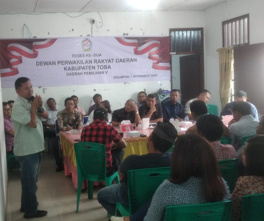 Toba, wartapenasatu.com – Dewan Perwakilan Rakyat Daerah (DPRD) Kabupaten Toba menggelar Reses II di Kecamatan Sigumpar, yang dihadiri dengan antusias oleh camat beserta staf, seluruh kepala desa didampingi sekretaris desa dan perangkat desa, serta tokoh masyarakat. Acara yang berlangsung di Balai Data Kantor Kecamatan Sigumpar pada Sabtu, 1 November 2025 ini, menjadi wadah penting untuk menyerap aspirasi masyarakat.