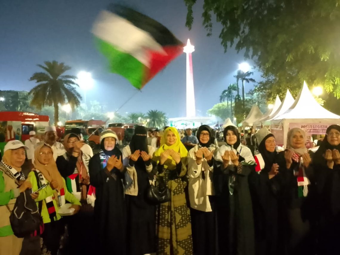 Peserta yang hadir tampak memenuhi area Monas sambil mengibarkan bendera Merah Putih dan bendera solidaritas Palestina. Kegiatan ditutup dengan Sholat Isya berjamaah yang menandai berakhirnya rangkaian inti Reuni Akbar 212 tahun ini.