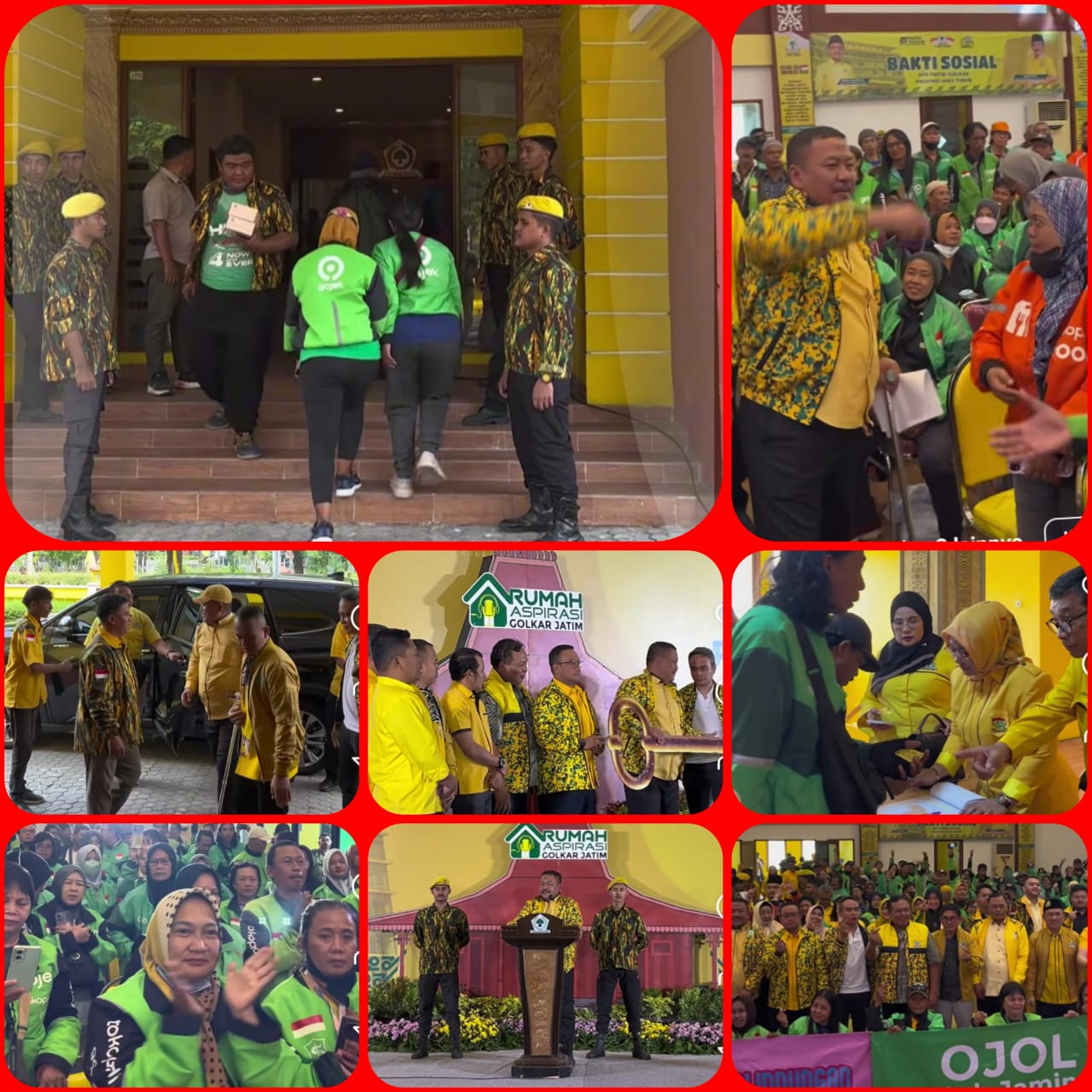 Ternyata, tidak kurang sebanyak lebih dari 300 orang para pengemudi ojek online mendapatkan undangan peresmian Rumah Aspirasi di kantor DPD Golkar Jatim.