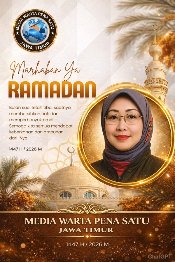 WARTAPENASATUJATIM | SURABAYA – Dalam rangka menyambut bulan suci Ramadan 1447 Hijriah, Yuyun Ary Soekardi selaku Kepala Perwakilan Wilayah (Kaperwil) Media Warta Pena Satu Jatim menyampaikan ucapan selamat menjalankan ibadah puasa kepada seluruh umat Muslim, khususnya pembaca dan mitra kerja di Jawa Timur.