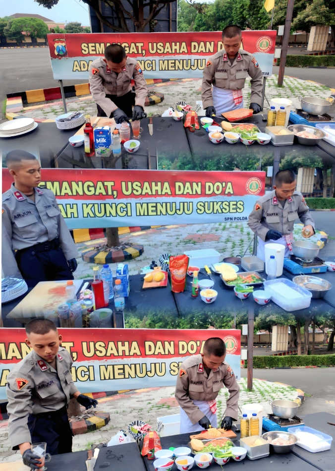 WARTAPENASATUJATIM | MOJOKERTO – Dua siswa Pendidikan Pembentukan Bintara (Diktukba) Polri T.A. 2025 SPN Polda Jatim dari jalur seleksi Bintara Kompetensi Khusus (Bakomsus) Tata Boga, tampil memukau memamerkan potensi kuliner mereka melalui sesi demo memasak.