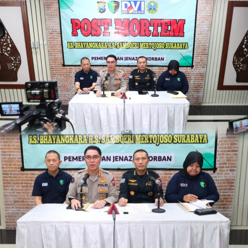 “Izinkan kami menyampaikan bela sungkawa yang sedalam-dalamnya terhadap para korban. Polda Jawa Timur bersama seluruh jajaran terus berupaya maksimal dalam penanganan identifikasi jenazah, dengan tetap menjunjung tinggi kehormatan para korban,” ujar Kombes Pol Jules Abraham Abast, dihadapan awak media.