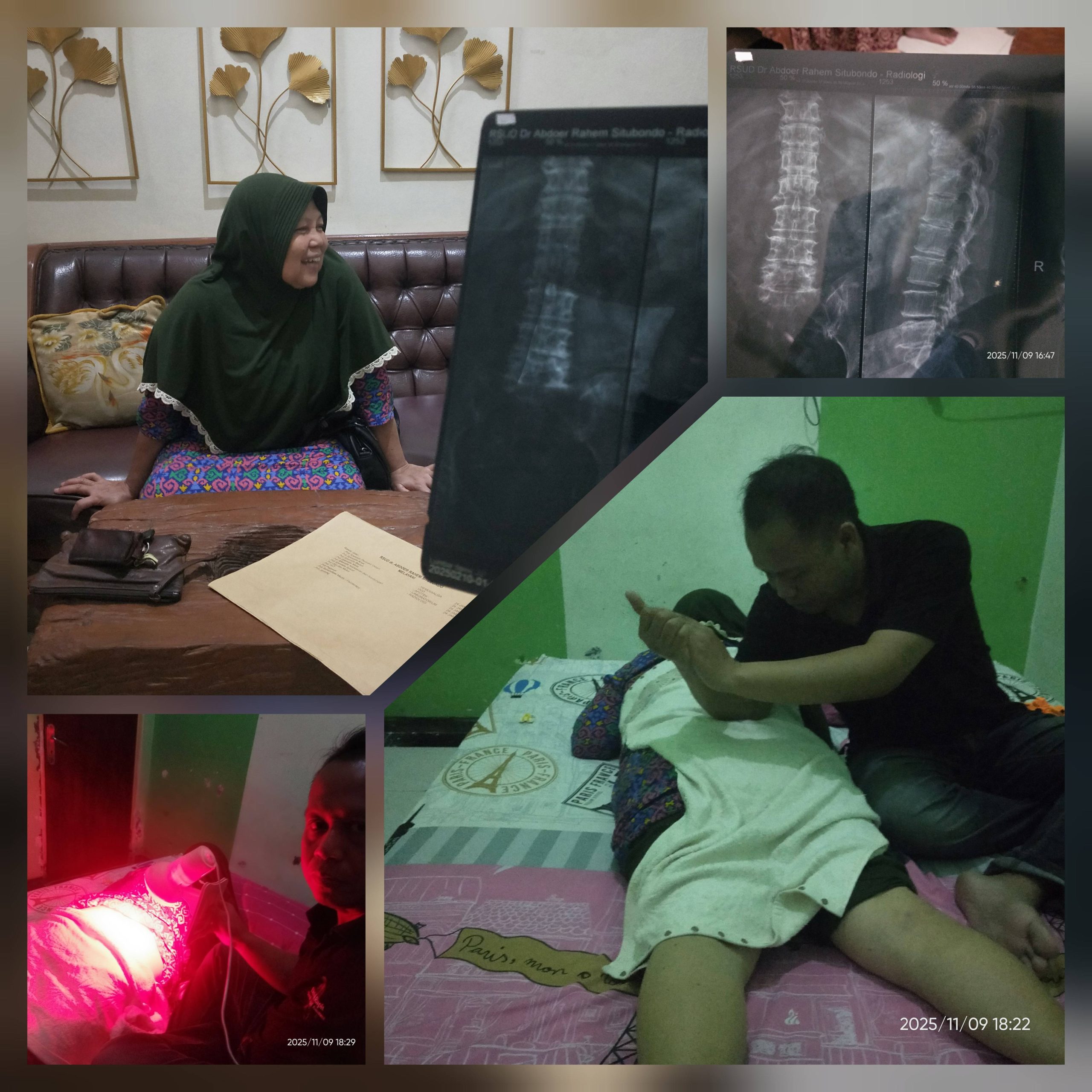 Proses terapi dilakukan secara bertahap, dimulai dari pelemasan otot-otot lumbar, pembukaan sirkulasi darah di area punggung bawah, hingga penyeimbangan jalur saraf antara tulang belakang dan lutut. Meski baru satu kali terapi, Ibu Nuruliyah mulai merasakan perubahan yang cukup nyata. “Pinggang saya rasanya lebih enteng, lutut juga sudah enggak terlalu nyeri,” katanya sambil tersenyum.