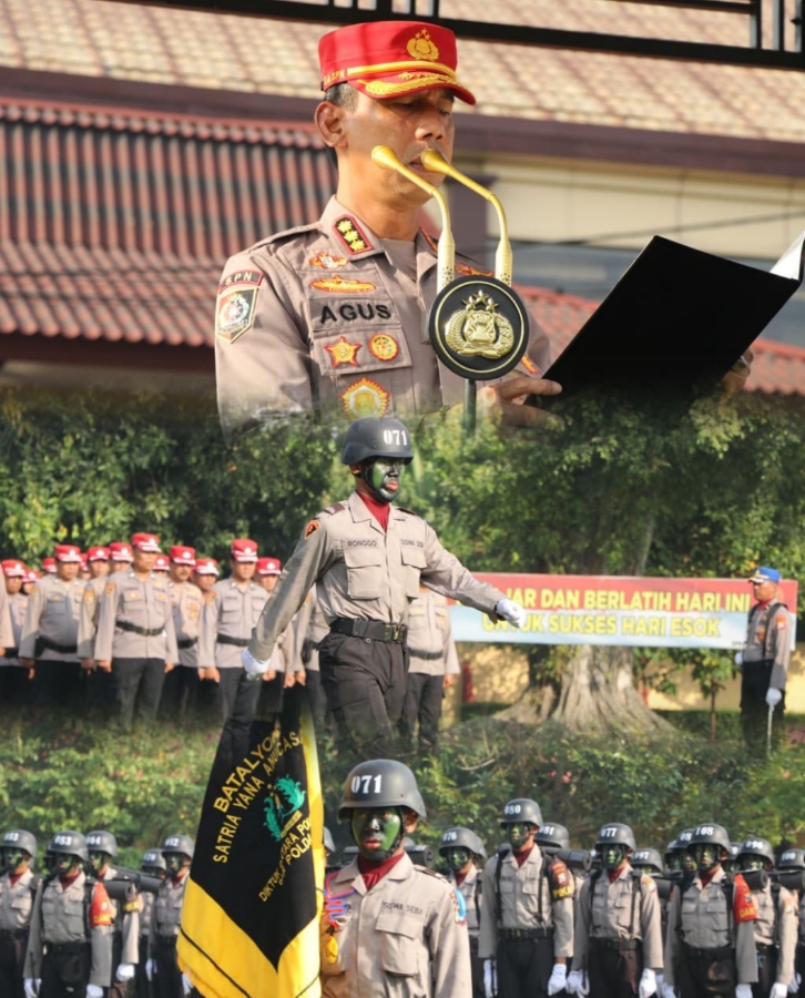 Dalam upacara yang berlangsung khidmat, angkatan Diktukba Polri T.A. 2025 SPN Polda Jatim secara resmi diberi nama “Satria Yana Anucasana”.
