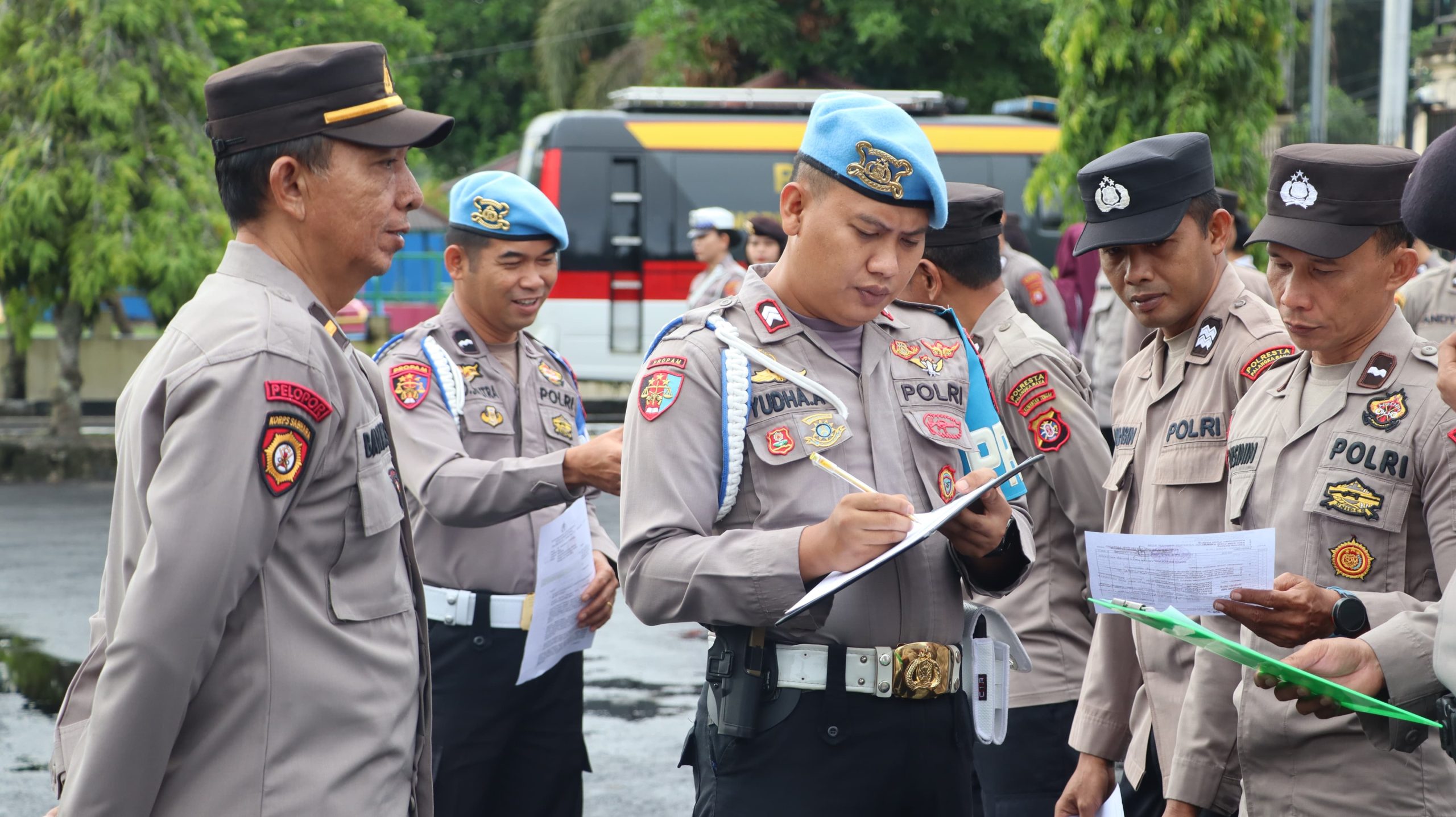 Waspers dilakukan dengan mengecek kehadiran dan kelengkapan personel dari setiap satuan fungsi (satfung) saat apel pagi di lapangan Mapolresta Palangka Raya, Jalan Tjilik Riwut Km. 3,5, Kota Palangka Raya, Kalimantan Tengah.